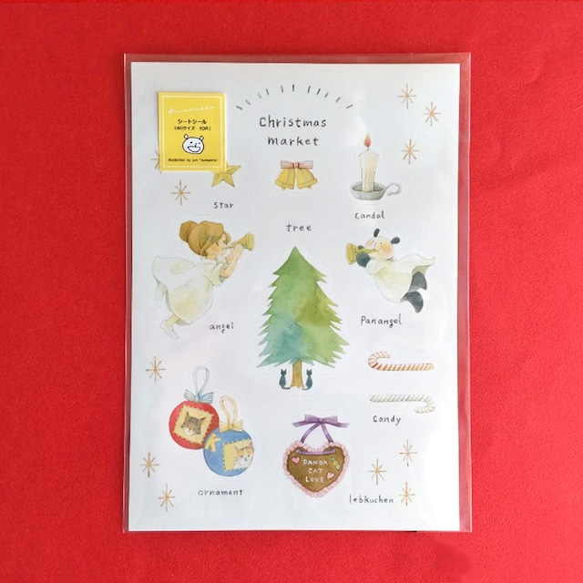 クリスマスのモチーフを描いた可愛いシートシール。 全部で10片あるのでお好きなところにぺたぺた貼ってくださいね! (A5サイズ シール部10片)